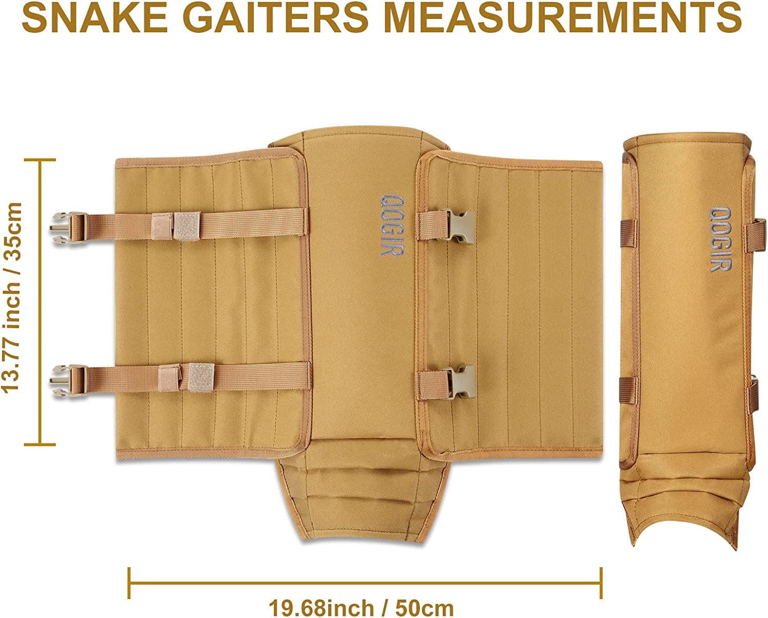 • ADJUSTABLE SIZE FOR MEN & WOMEN: QOGIR snake gaiters feature a unique design of 13 individual polycarbonate panels that wrap smoothly around your calves, lower legs, and ankles. With tightening straps and buckles, you can adjust the gaiters so they fit snugly and comfortably while you're walking, hiking, working, or exploring.snake gaiter are perfect snake guards for women, as well as men.