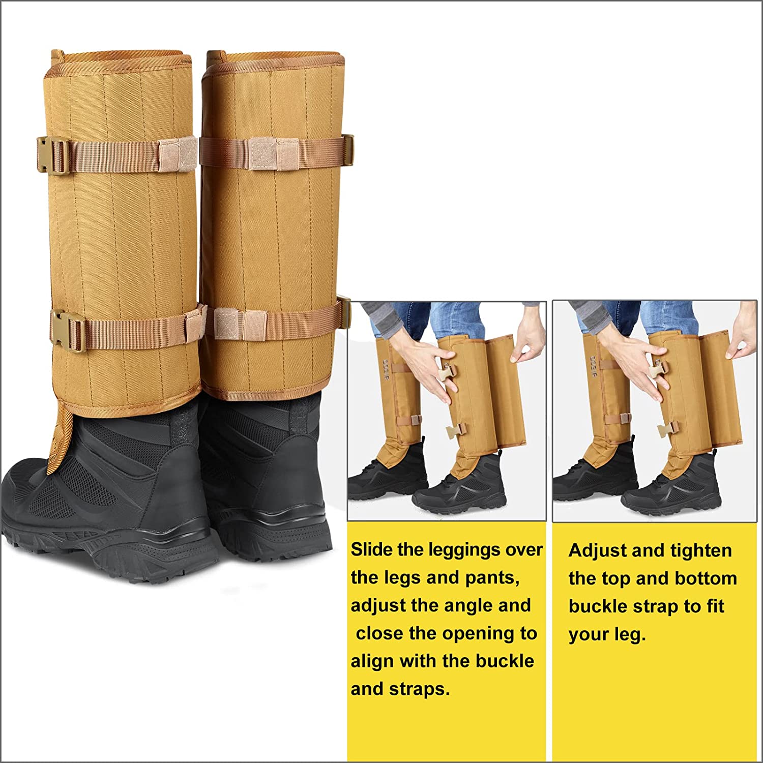 • STRONG PROTECTION FROM SNAKE BITES: The unique material Is enough to withstand the snake's tooth, snake gaiters provide superior protection against rattlesnakes and other snakes, thorns, cactus needles, and other dangers you may come across in the woods or the desert. Good for surveyors or lawn crews when working in snake infested areas. Also fit for Hunting, Hiking, Camping, Climbing.
