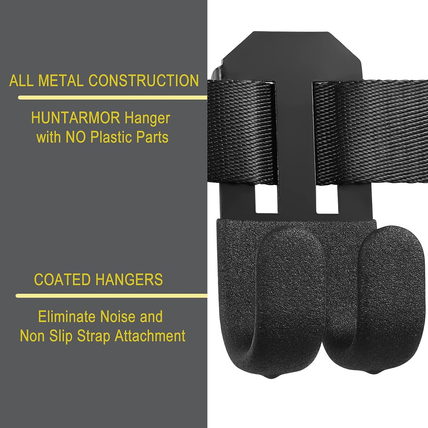 - NO DAMAGE TO TREES: Our treestand strap hangers are designed to avoid tree damage, with no screws required. They're perfect for holding bow hunting accessories and other hunting items while in a climbing stand, and can even support the full weight, allowing for hands-free and comfortable hunting for hours.