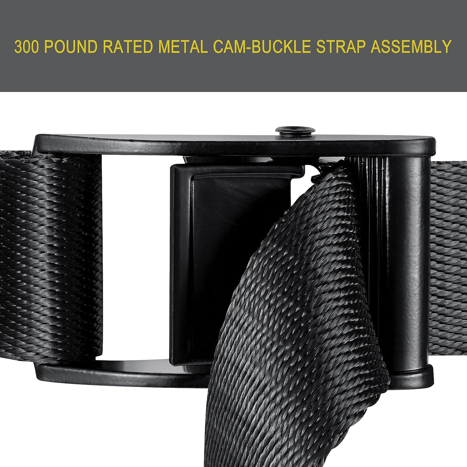 - EASY TO USE & SILENT: Our treestand strap hangers have a perfect silence carrier, with webbing straps and coated hooks that won't break in cold weather. The self-lock buckle makes it easy to set up and move from one tree to another, and you can attach 4 large, movable metal hangers on your tree in seconds.